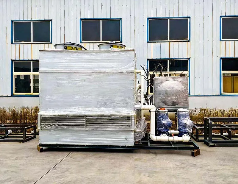 Closed cooling towers can be divided into counterflow closed cooling towers, cross flow closed cooling towers, and mixed flow closed cooling towers according to the direction of water flow and wind direction. A closed cooling tower is a system in which a tube heat exchanger is placed inside the tower, and the cooling effect is ensured through heat exchange between circulating air, sprayed water outside the tube, and circulating water inside the tube. Due to the closed circulation inside the pipe, the circulating water can ensure that the water quality is not polluted, which effectively protects the efficient operation of the main equipment and improves its service life. When the outside temperature is low, the sprinkler system can be turned off to save water.